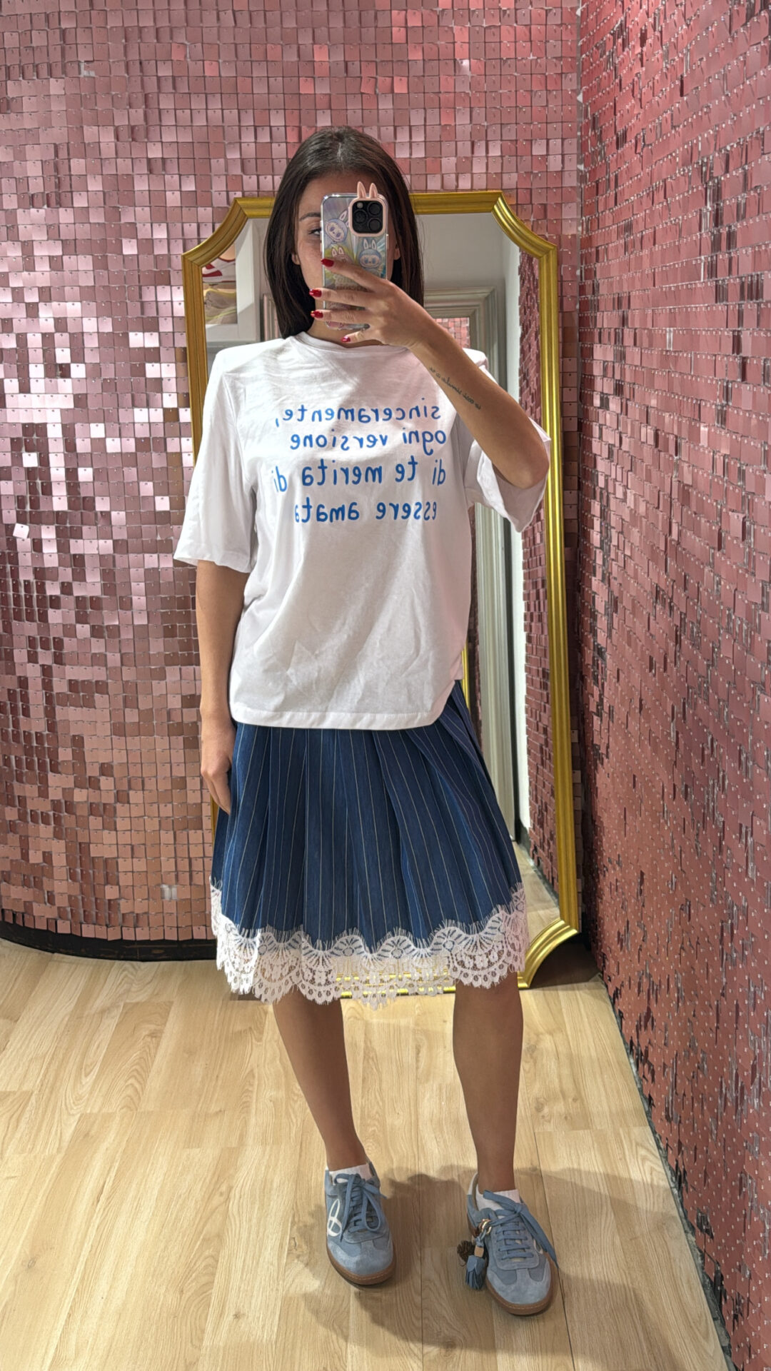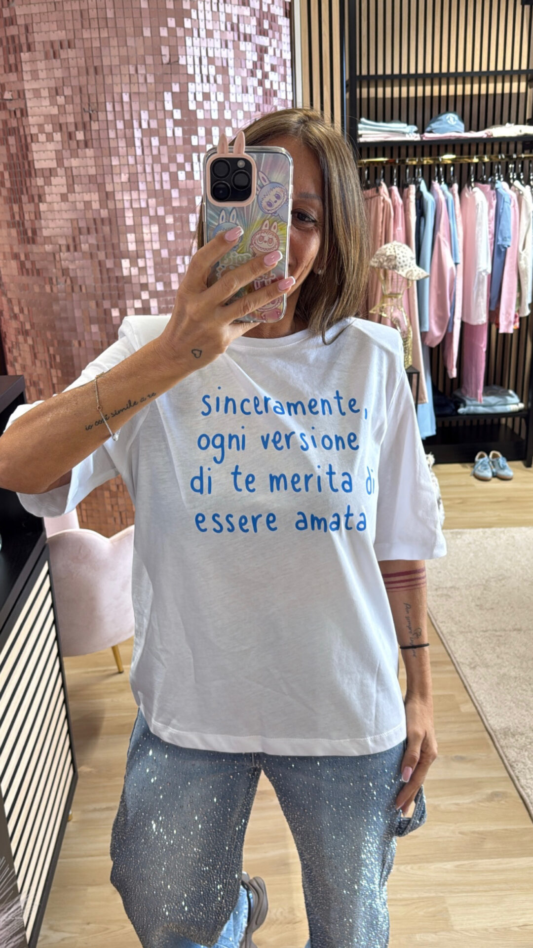 T-shirt Over SUSYMIX girocollol con scritta frontale ” sinceramente, ogni versione di te merita di essere amata ”