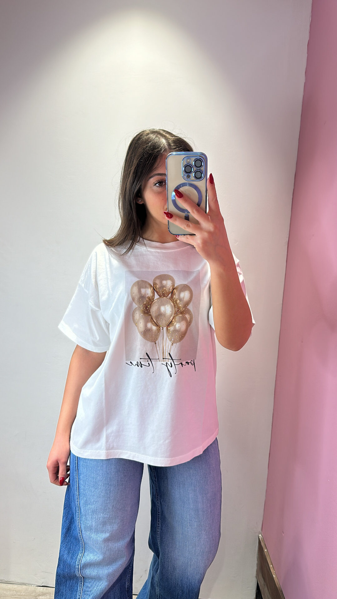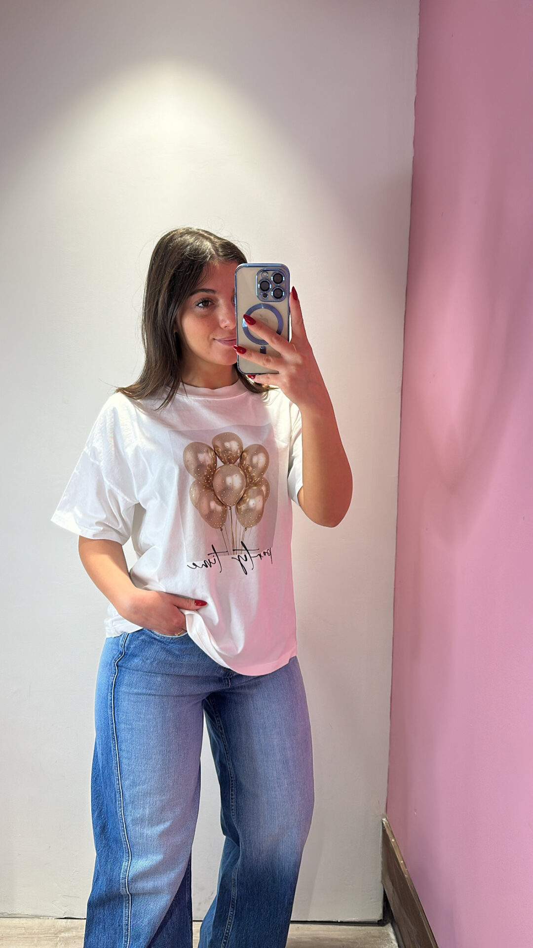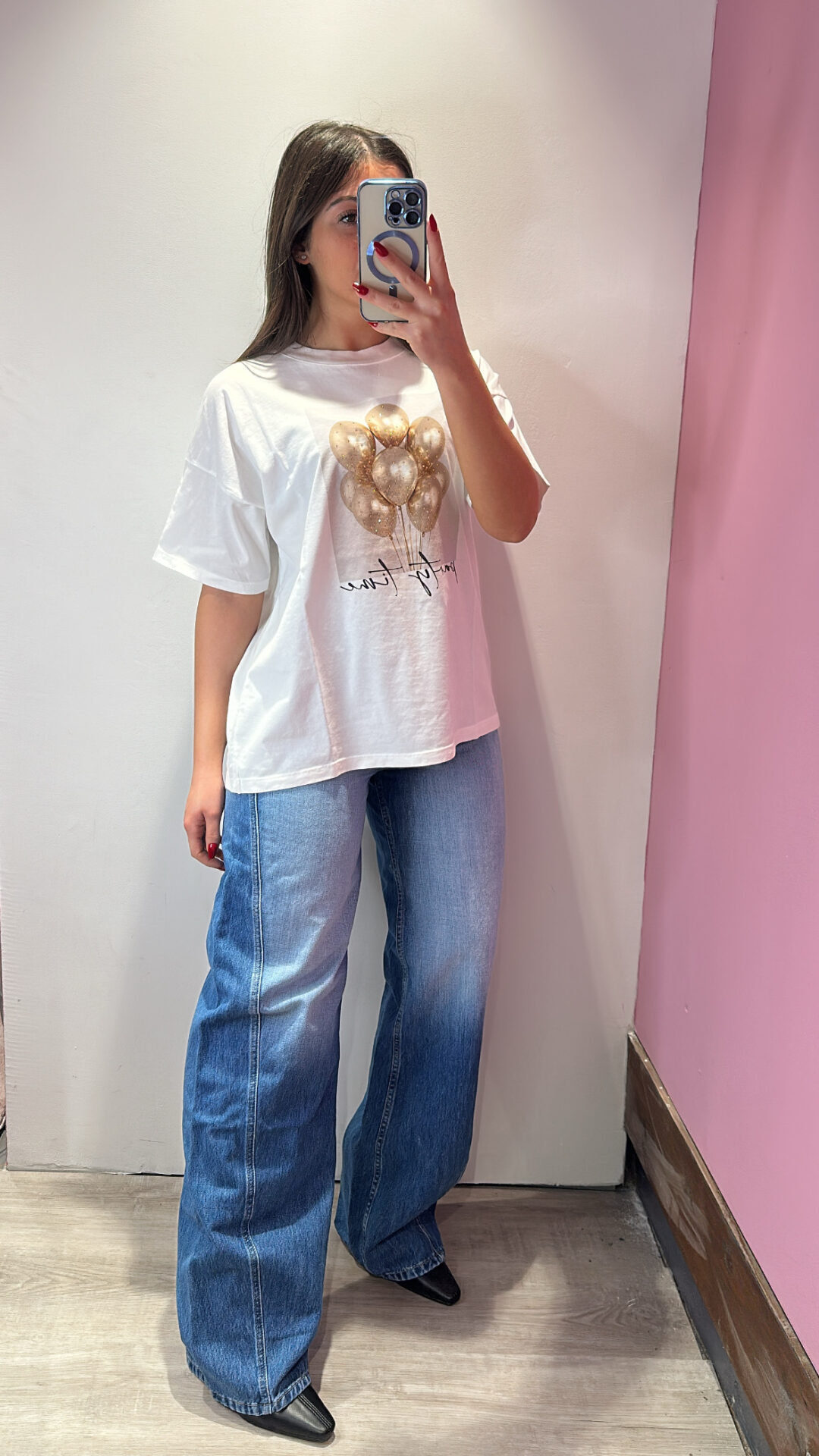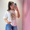 T-shirt Over VICOLO girocollo con stampa plastificata & strass
