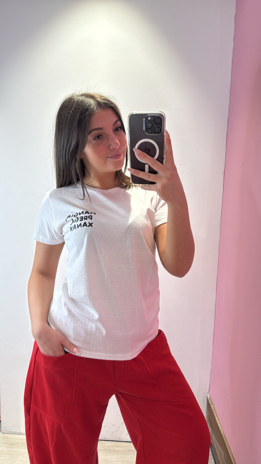 T-shirt SUSYMIX girocollo con scritta stampata “mangia, prega, xanax”