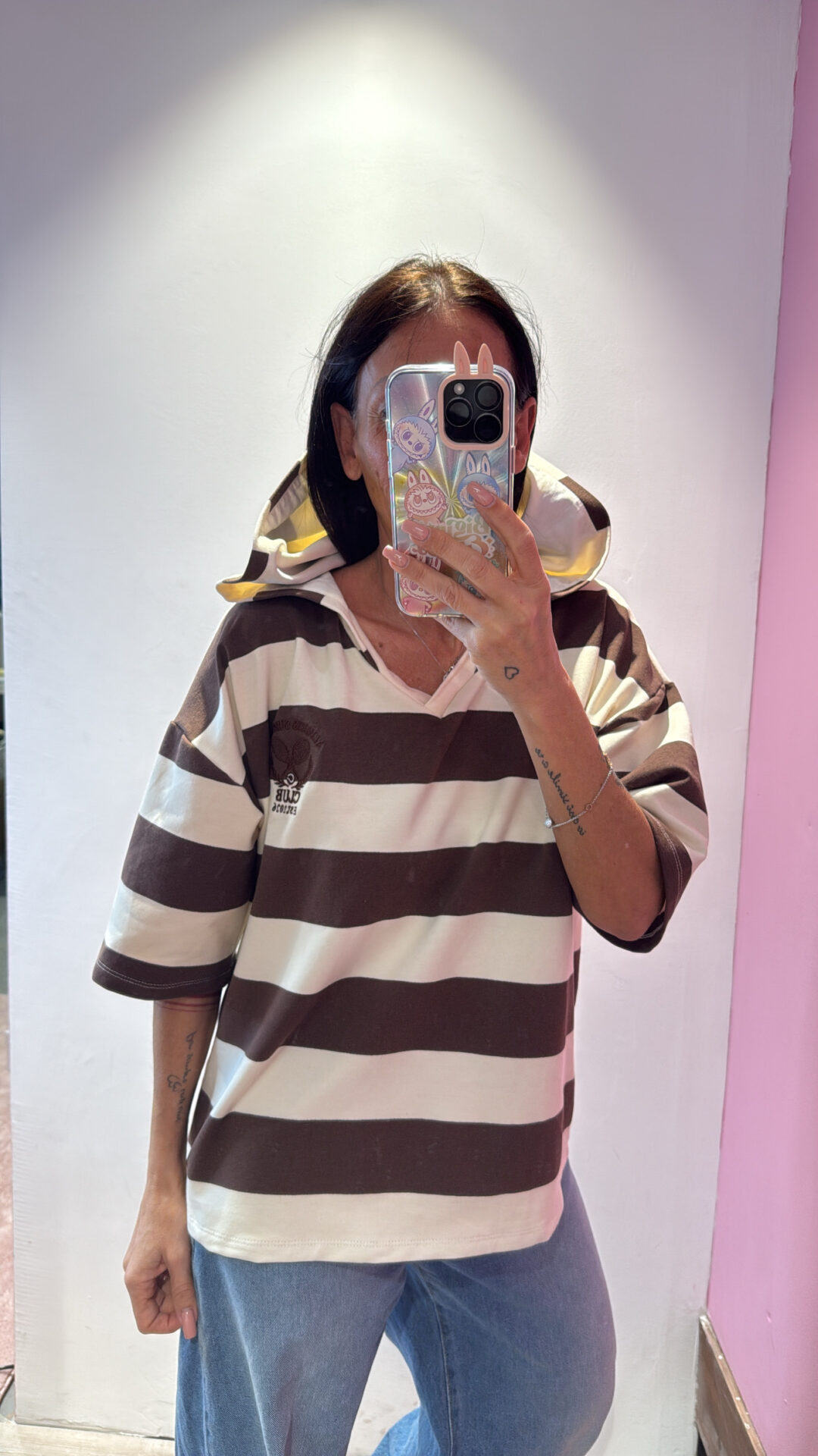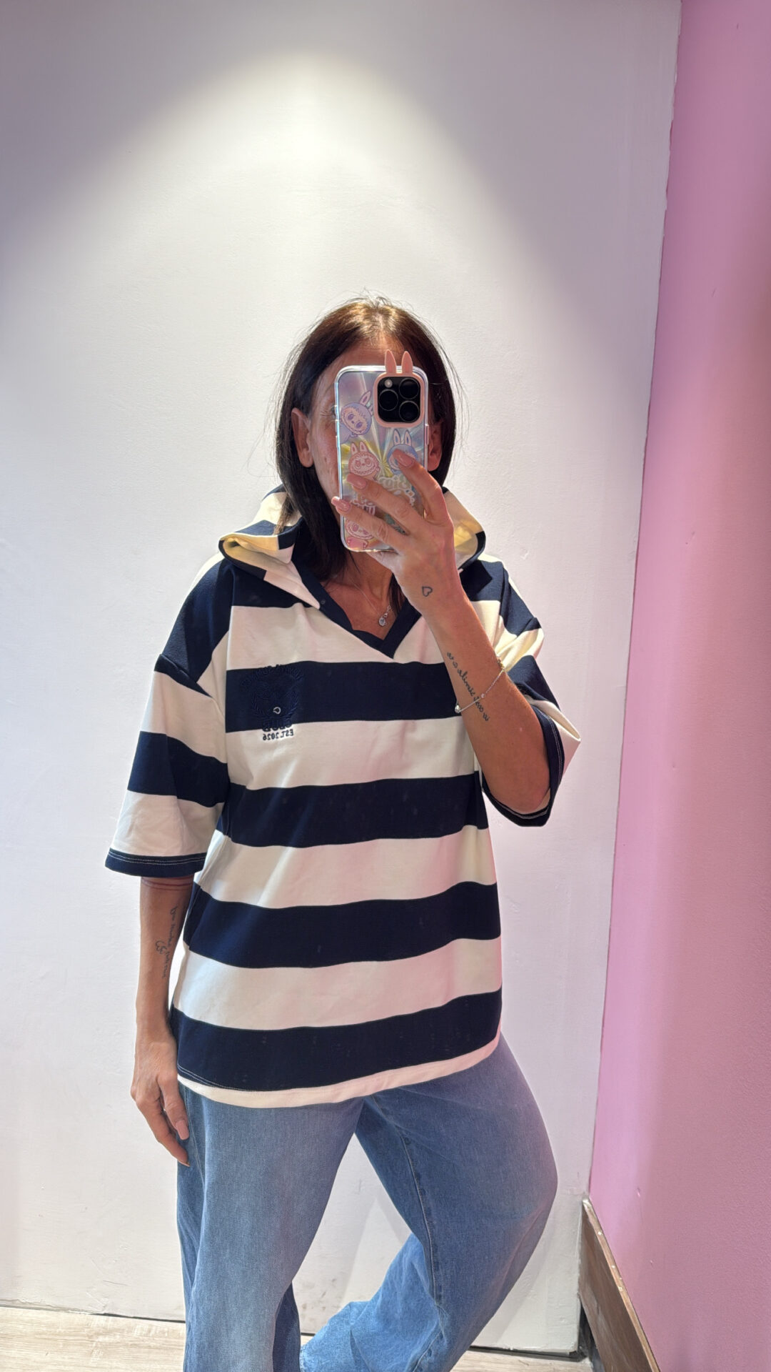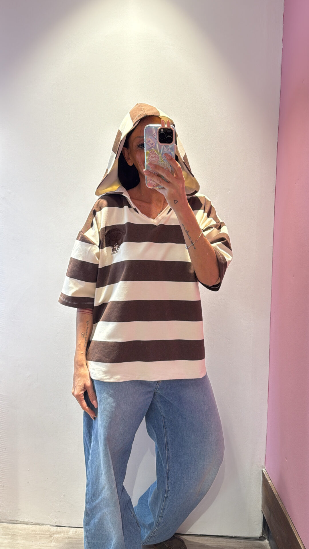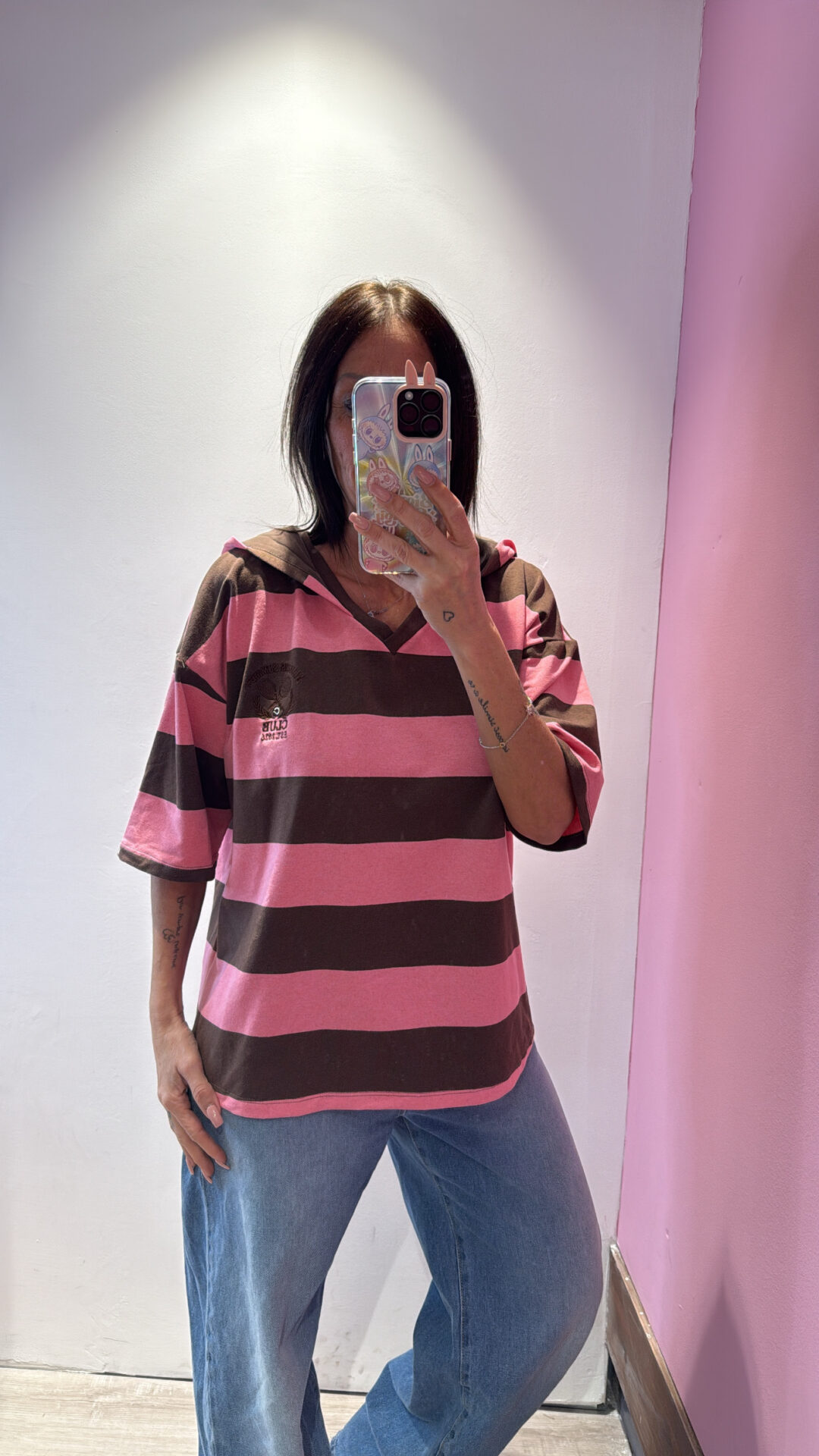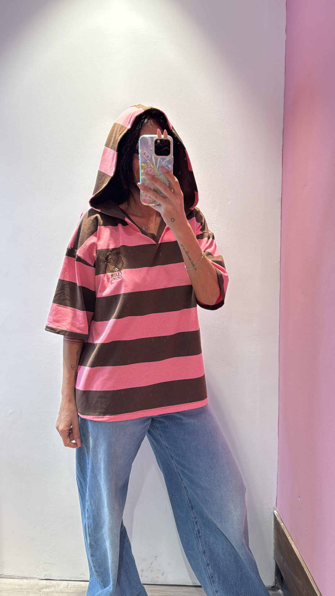 T-shirt VICOLO scollata a V con cappuccio & ricamo laterale