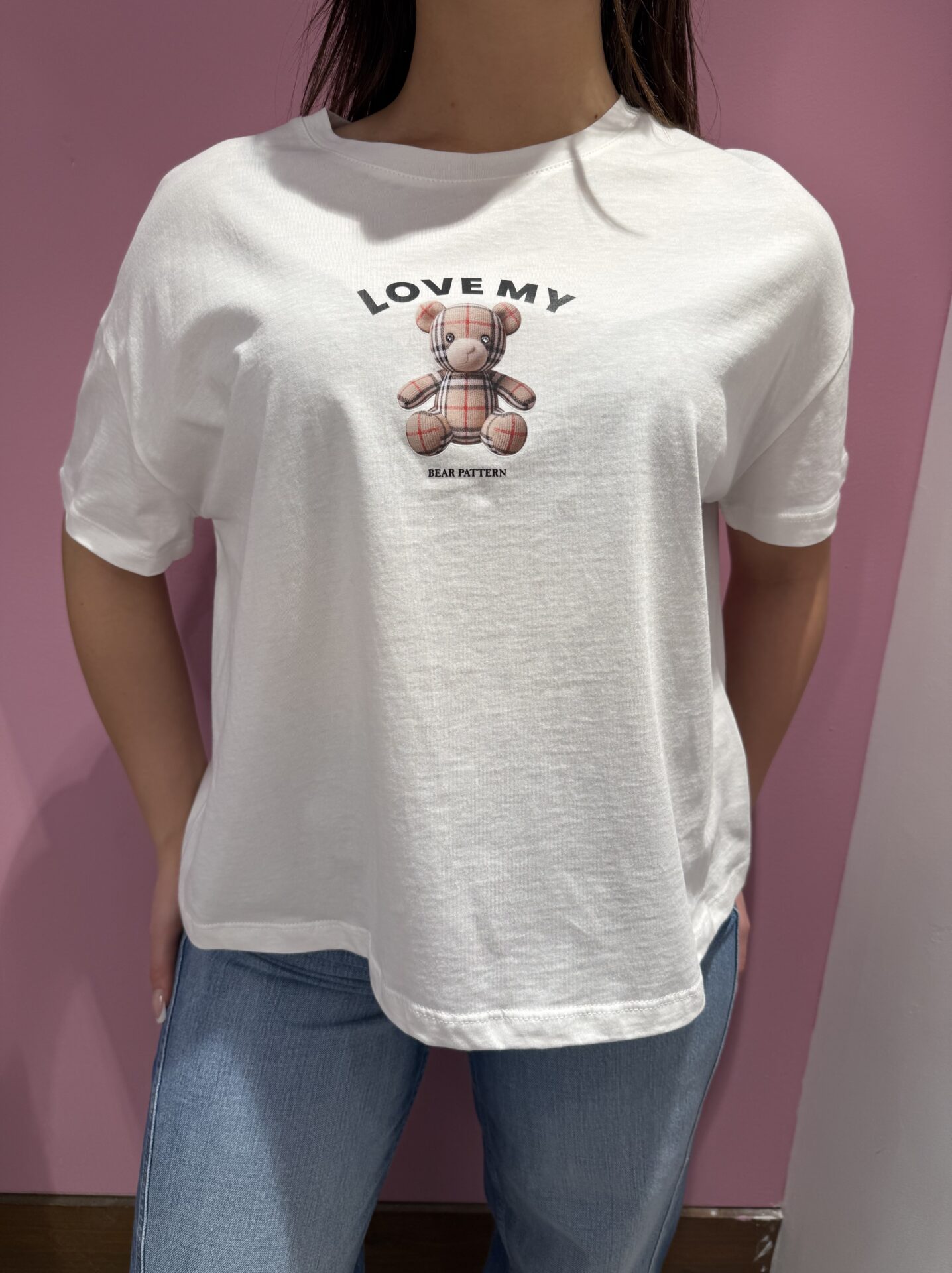 T-shirt VICOLO girocollo a scatoletta con stampa plastificata & strass