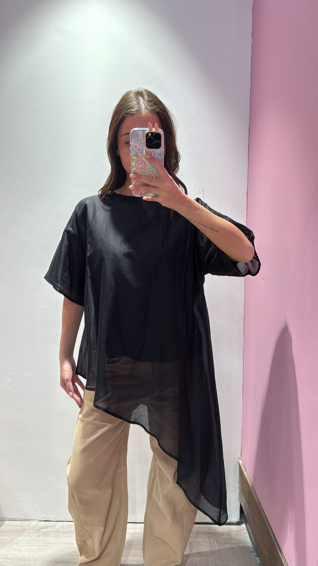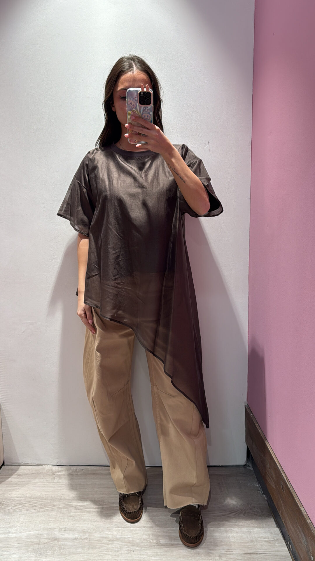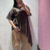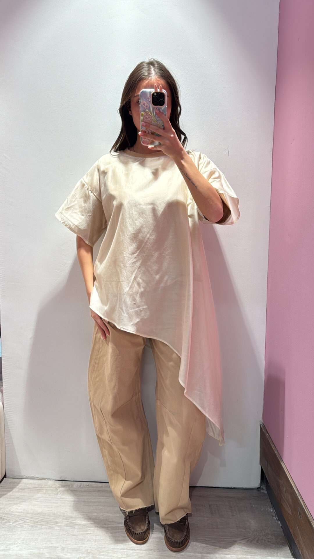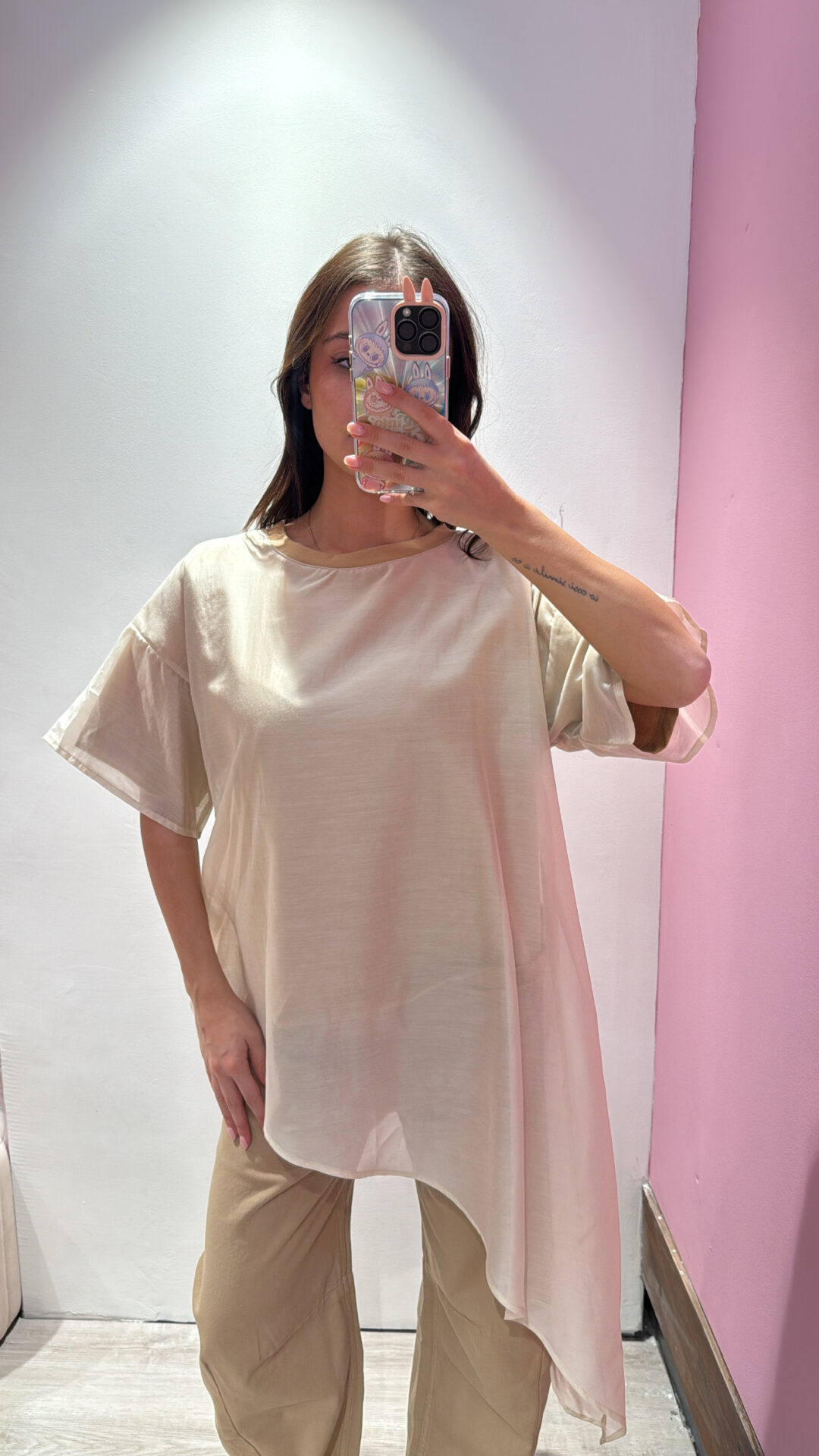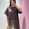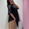 T-shirt VICOLO girocollo asimmetrica in cotone con sovrapposizione in lyocell