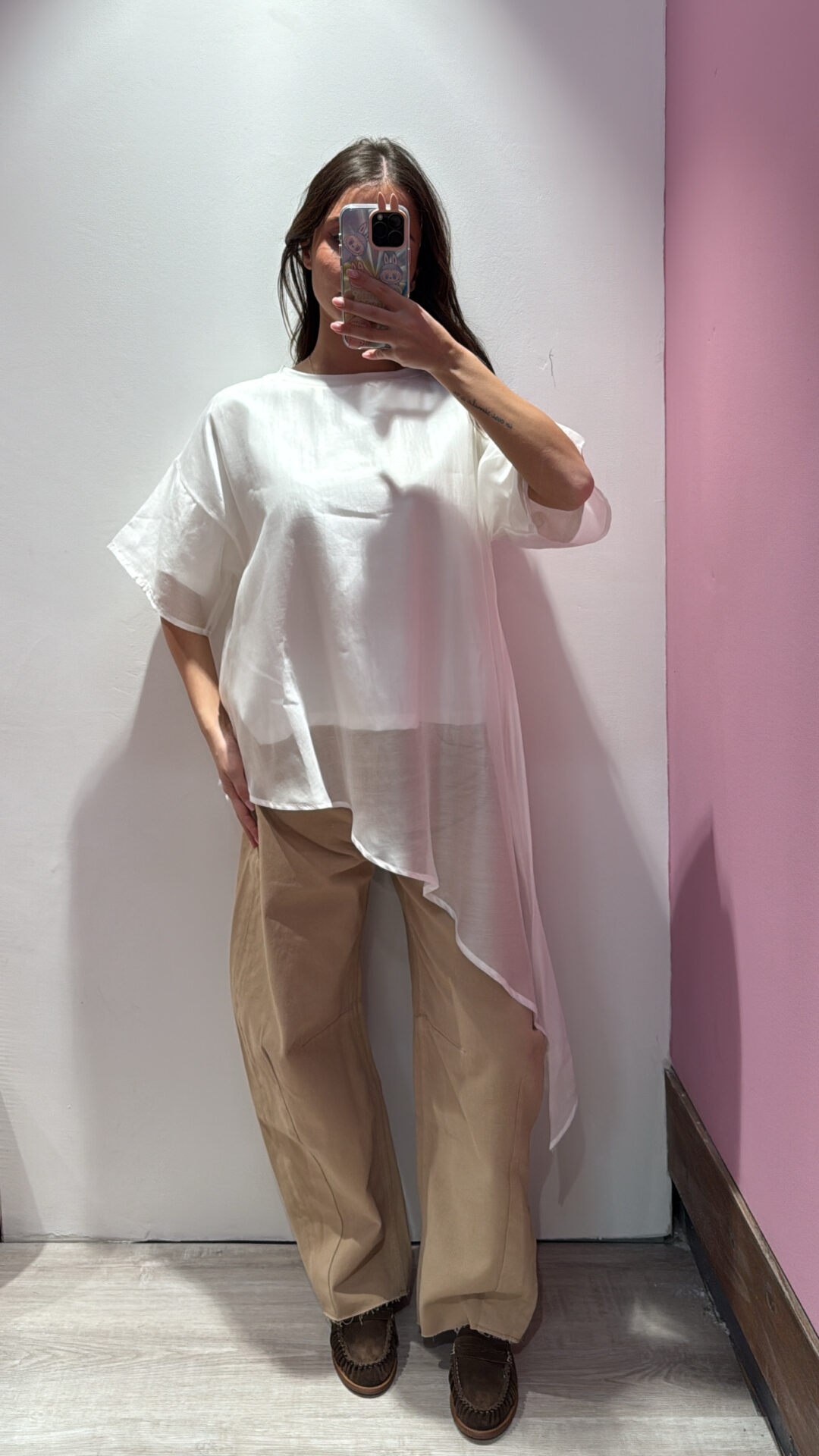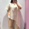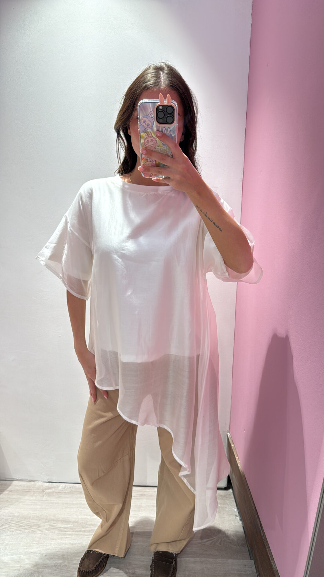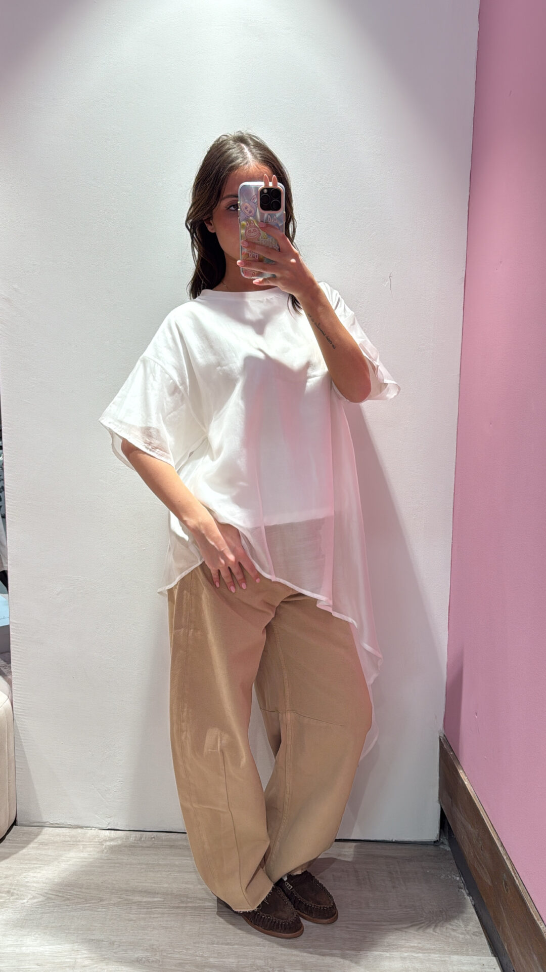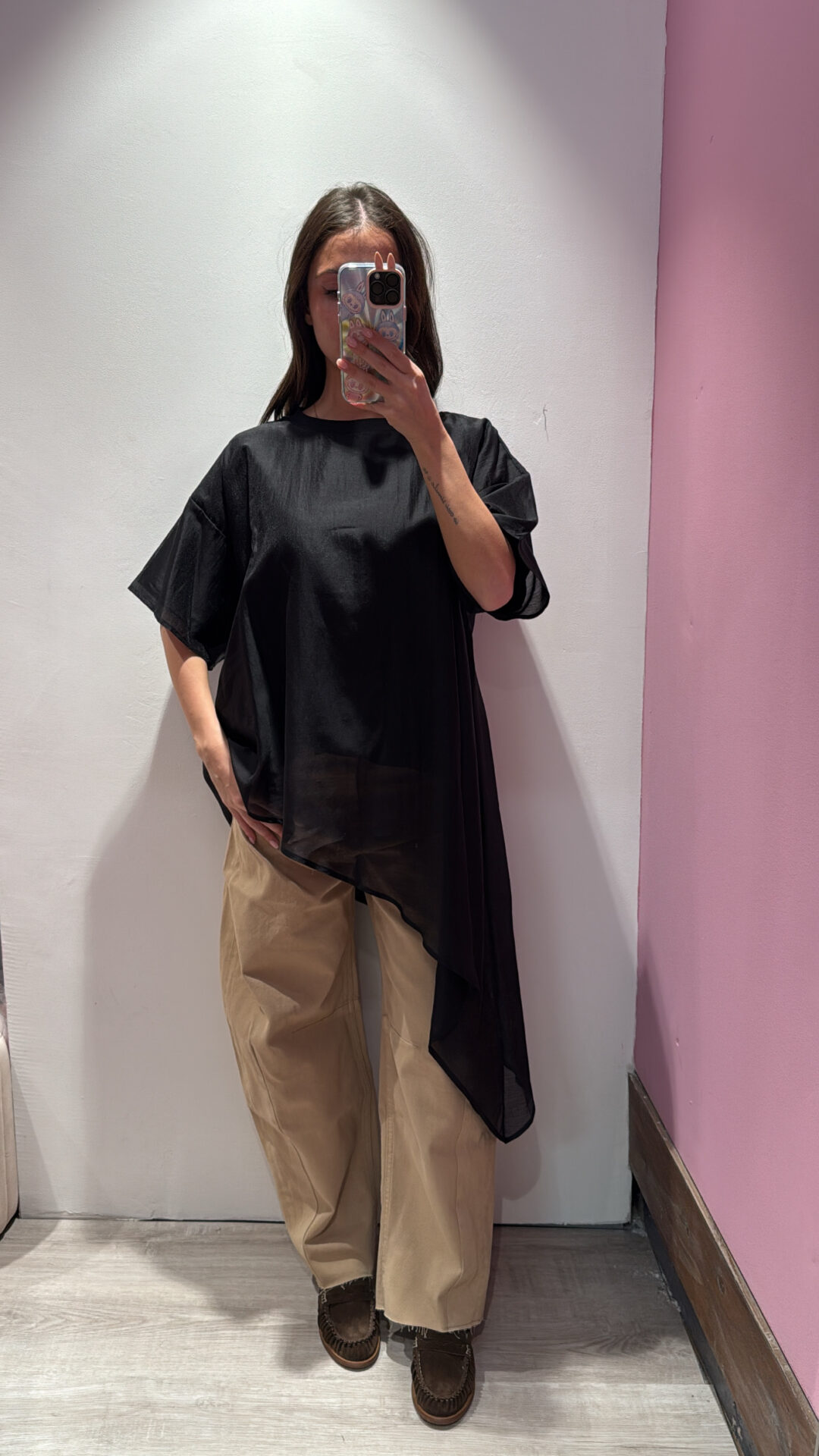T-shirt VICOLO girocollo asimmetrica in cotone con sovrapposizione in lyocell