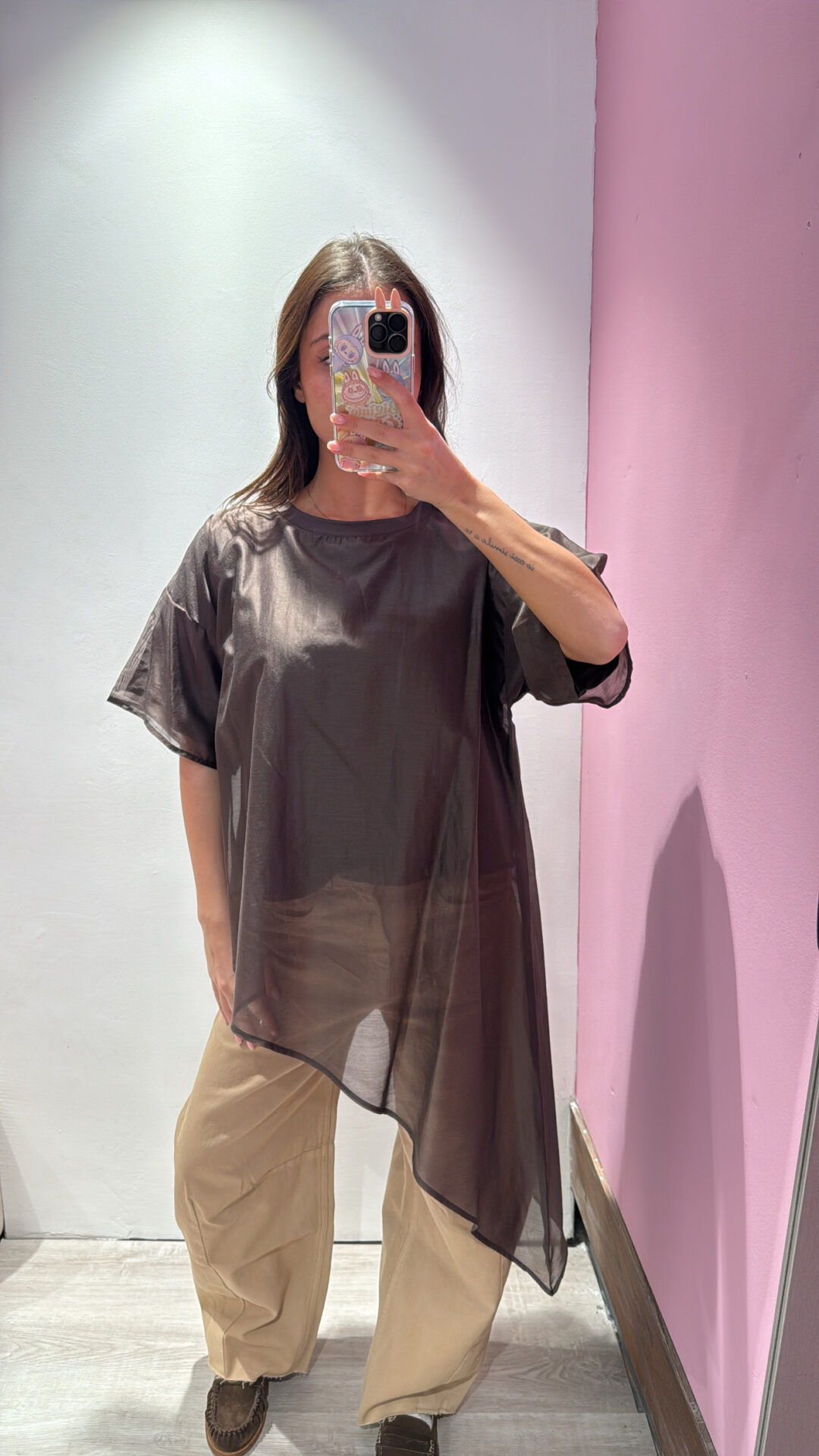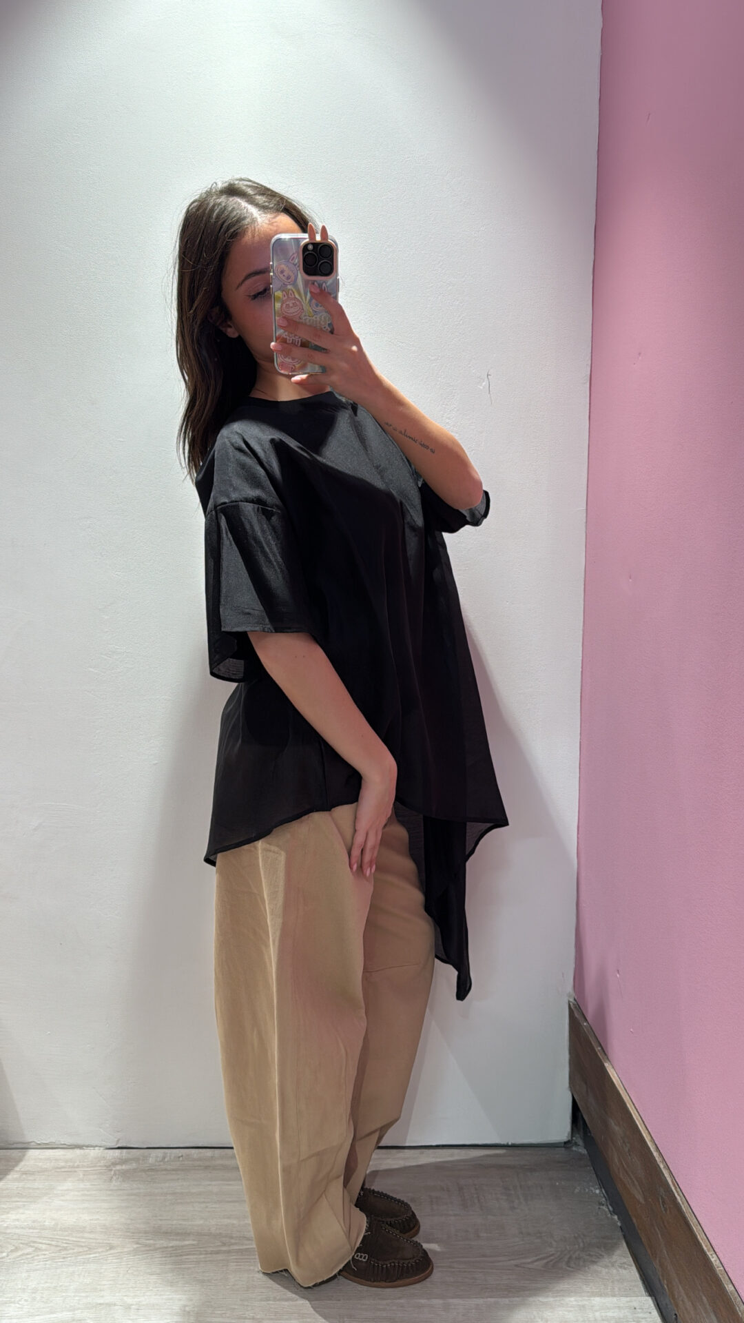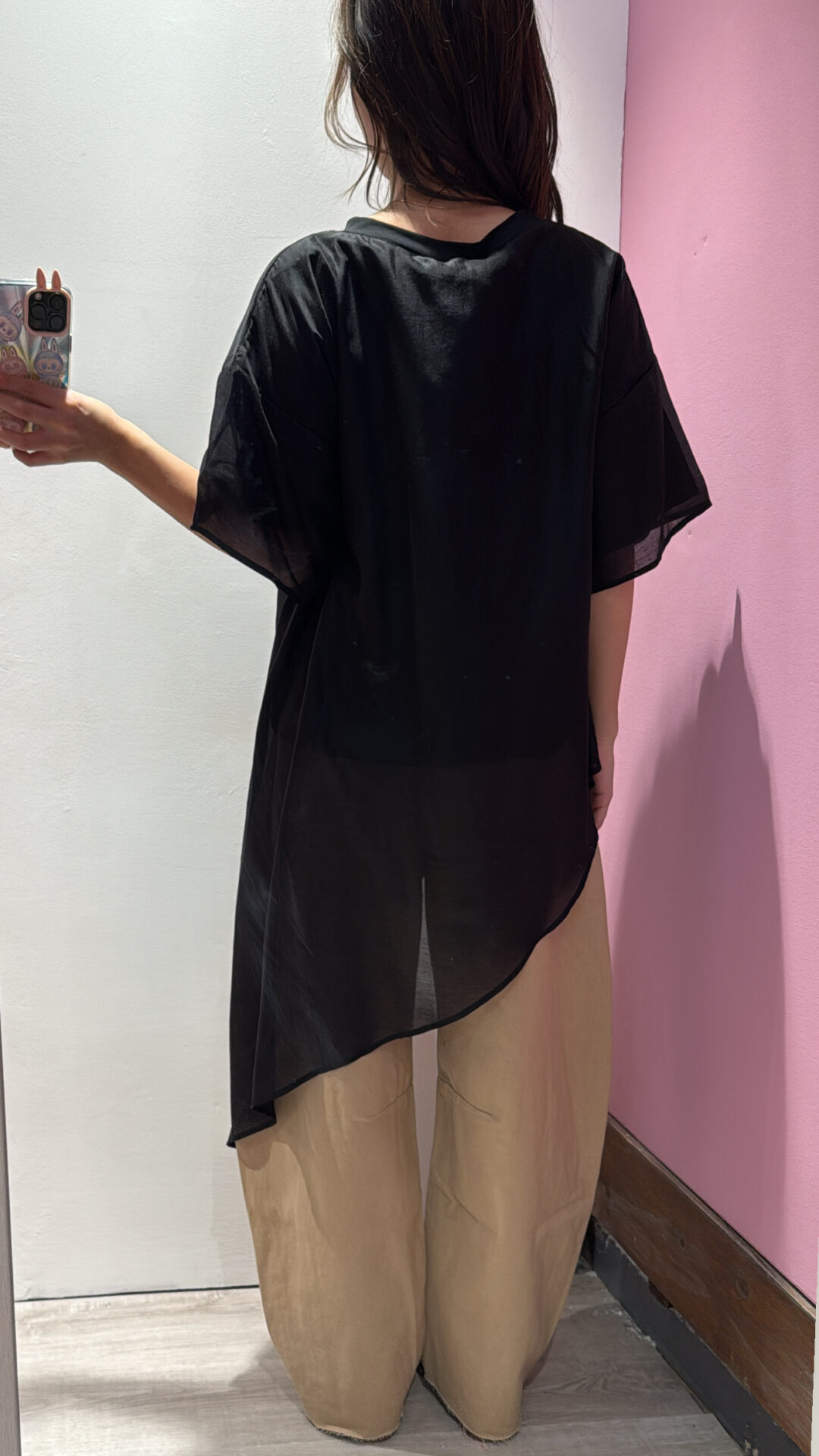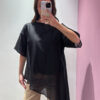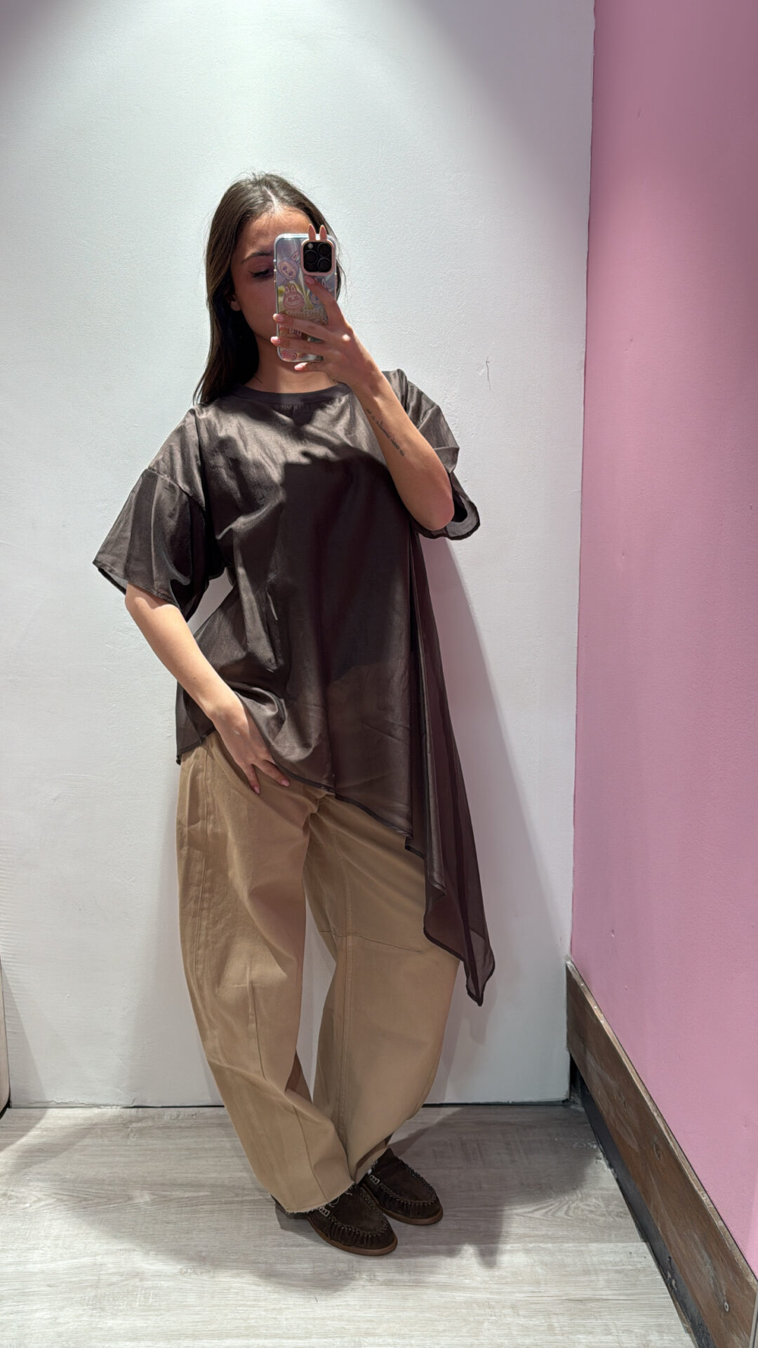 T-shirt VICOLO girocollo asimmetrica in cotone con sovrapposizione in lyocell