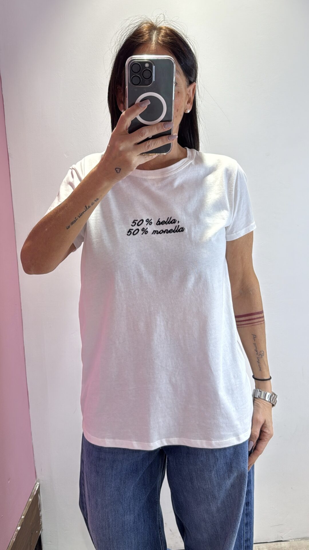 T-shirt VICOLO girocollo con ricamo 50% bella , 50% monella
