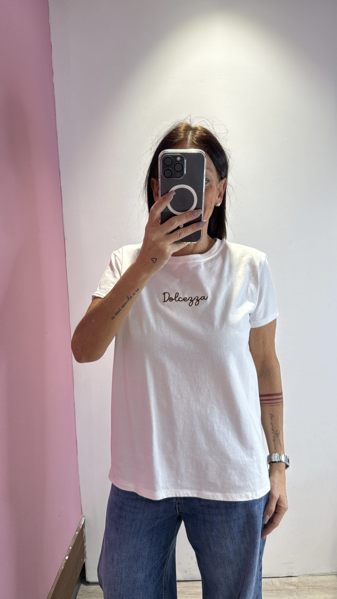 T-shirt VICOLO girocollo con ricamo Dolcezza ( scritta in moro)