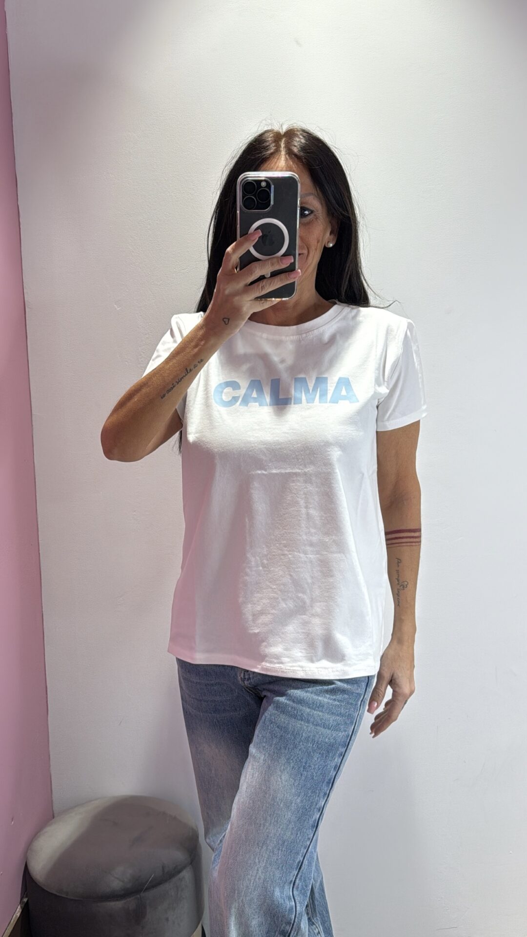 T-shirt VICOLO girocollo con stampa CALMA , modello a scatoletta