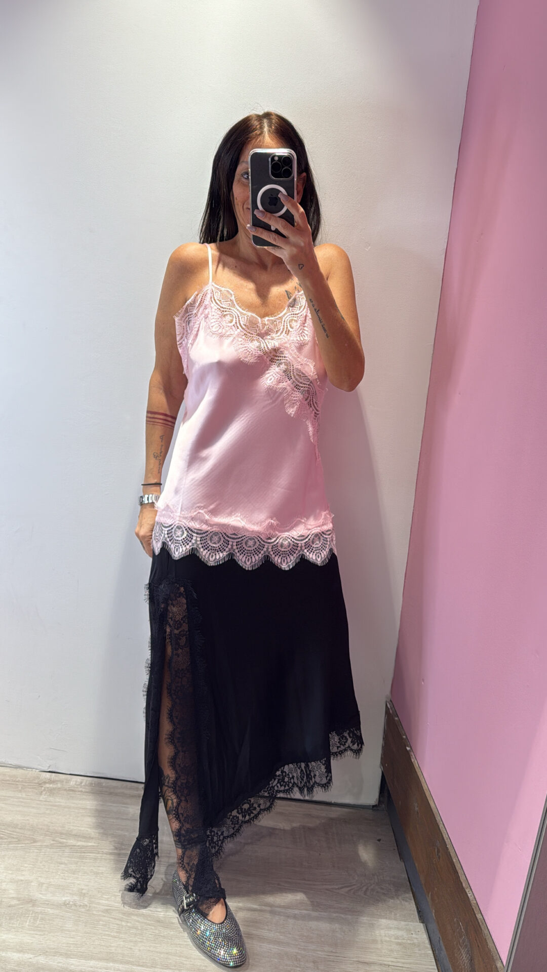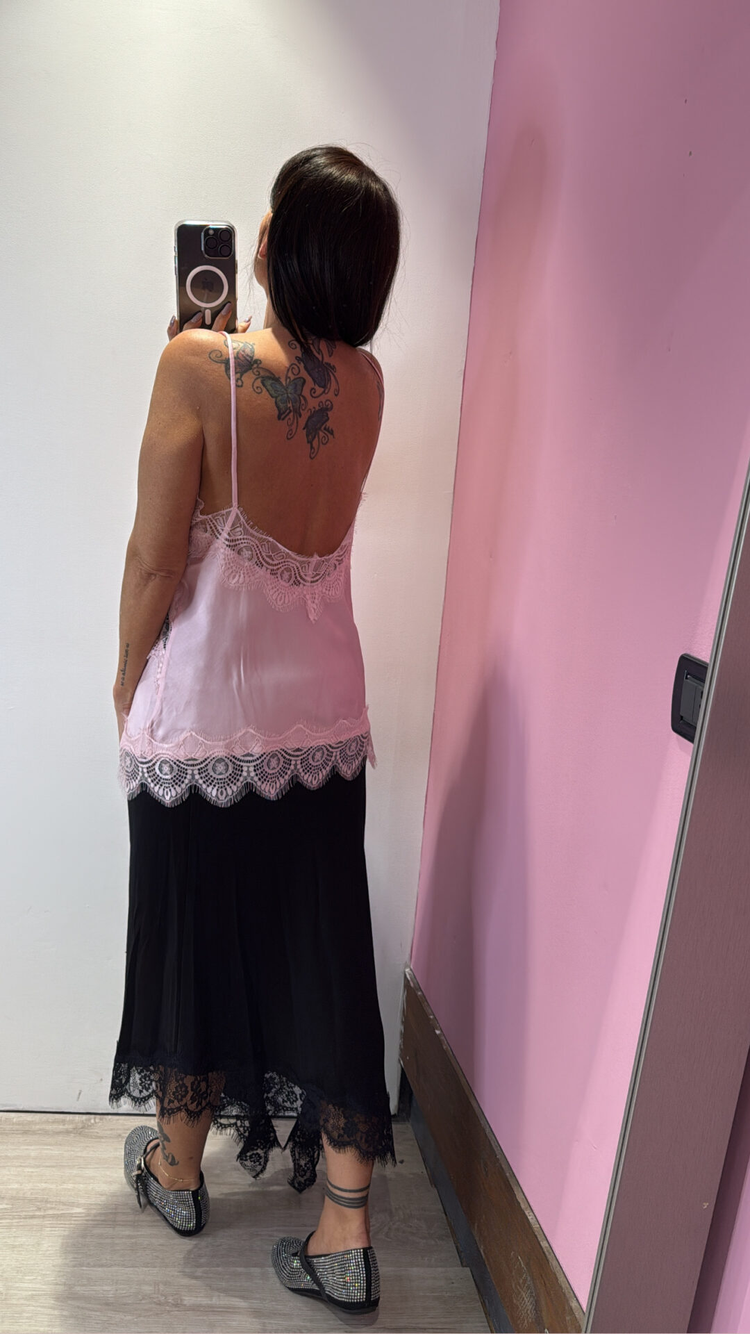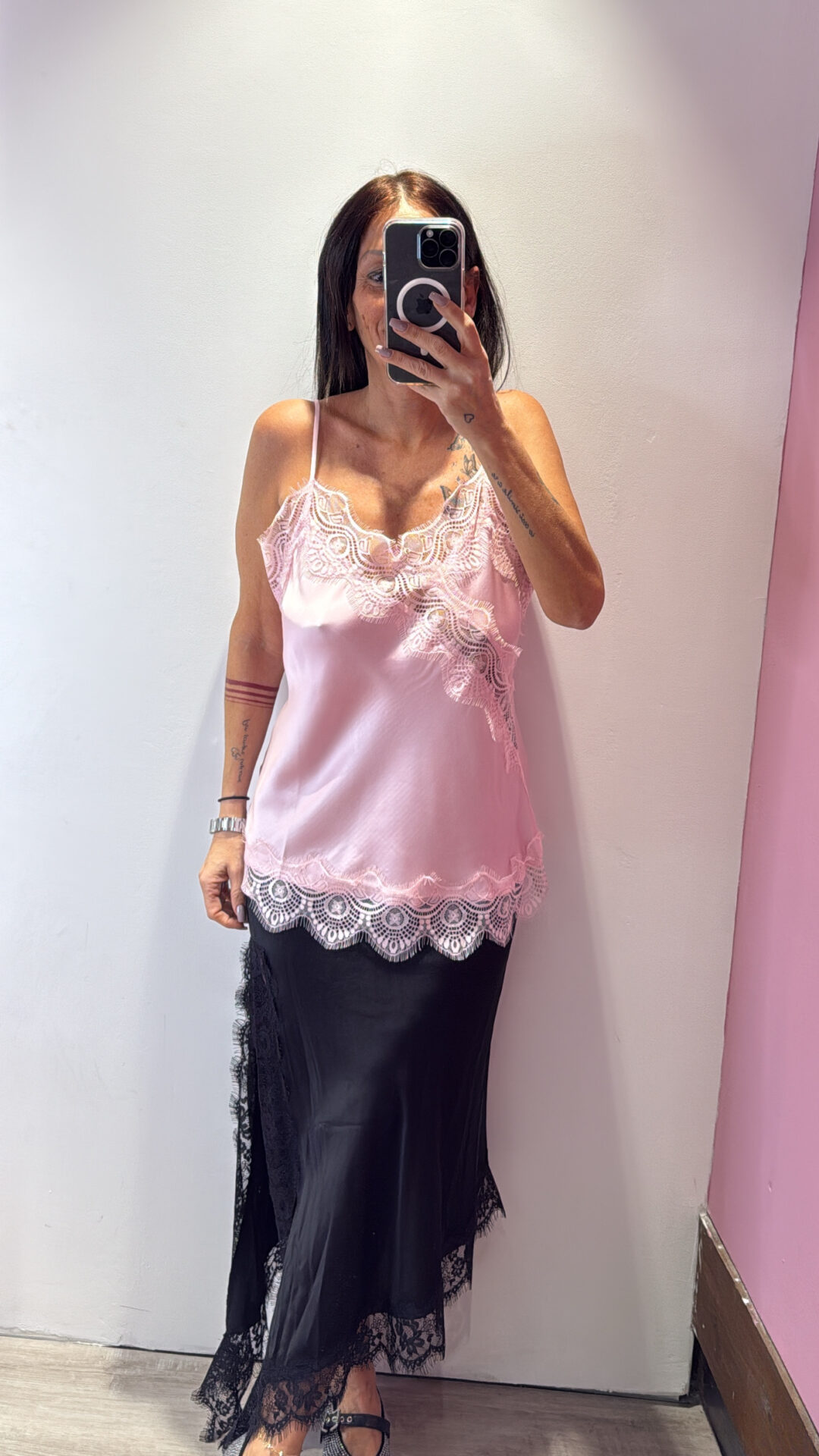 Top SUSYMIX con dettagli in pizzo, spalline sottili
